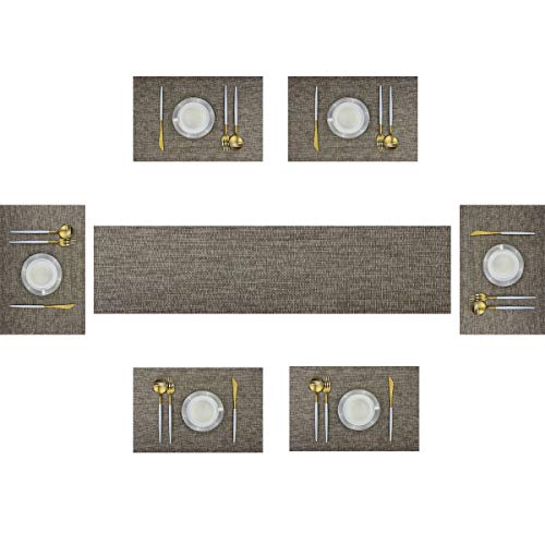 Product reviews BECHEN Thicken Placemats Set of 6 Vinyl Heat-Resistant Table Mats Washable Plastic Placemats for Dining Table (Gold) (6 Placemats with 1 Table Runner, A Flaxen)